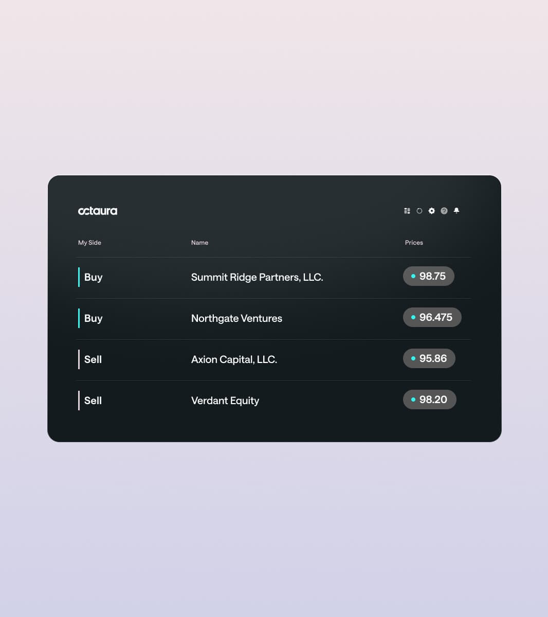 Connect to the market with dozens of Dealers and over 150 buyside firms, Octaura's active user base continues to grow so you can access deep liquidity for loans and CLOs.